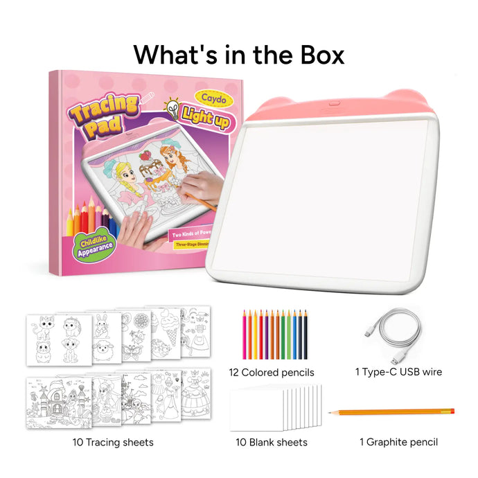 (Items attached: Features 1 Tracing Pad, 12 Colored Pencils, 10 Tracing Sheets, 10 Blank Sheets, and 1 Graphite Pencil,1 Type-C USB wire)