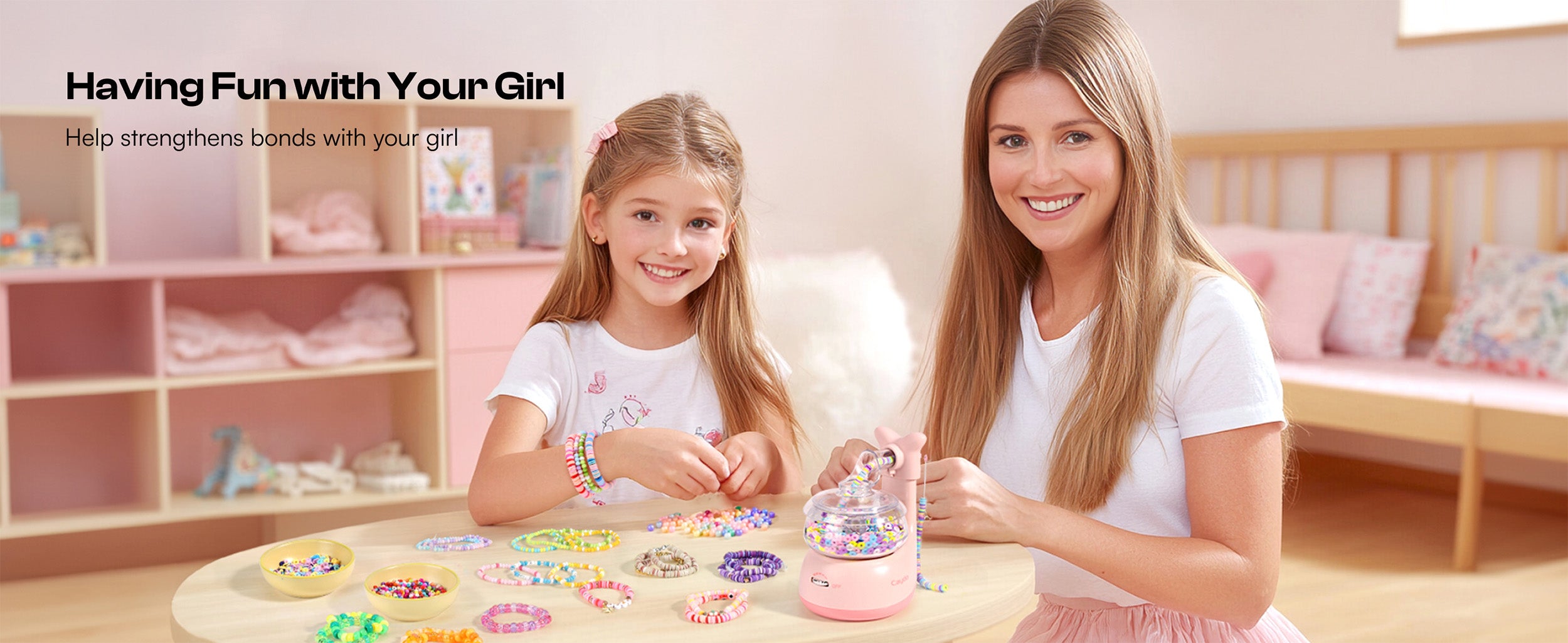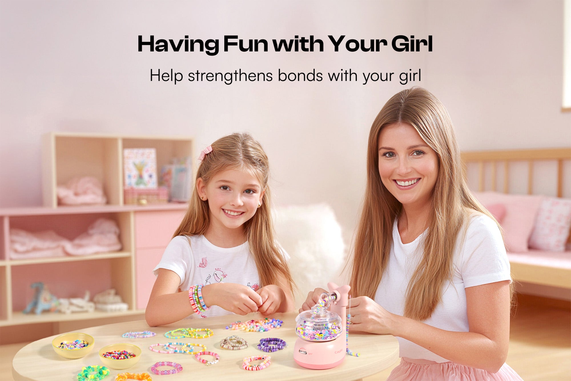 - Everything you need in the Box: Coming with 1 Pink Electric Bead Spinner, 1 Bag of colorful clay beads, 1 Bag of Letter Beads, 2 Beading Needles, 1 USB-C Cable, 1 roll of White Cotton Thread, 1 roll of Elastic String and 1 detail user manual to guide you how to use it