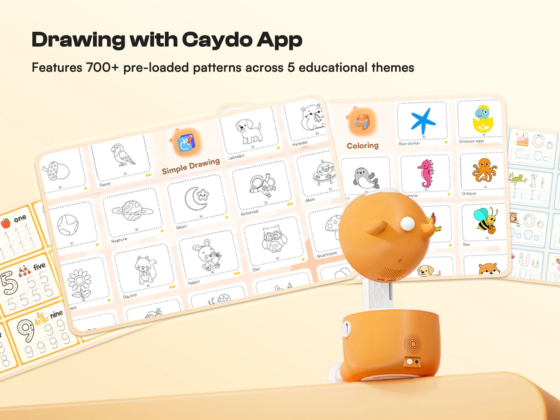 Pick a drawing or upload your own photo via the Caydo Art Design App — watch the image appear like magic.