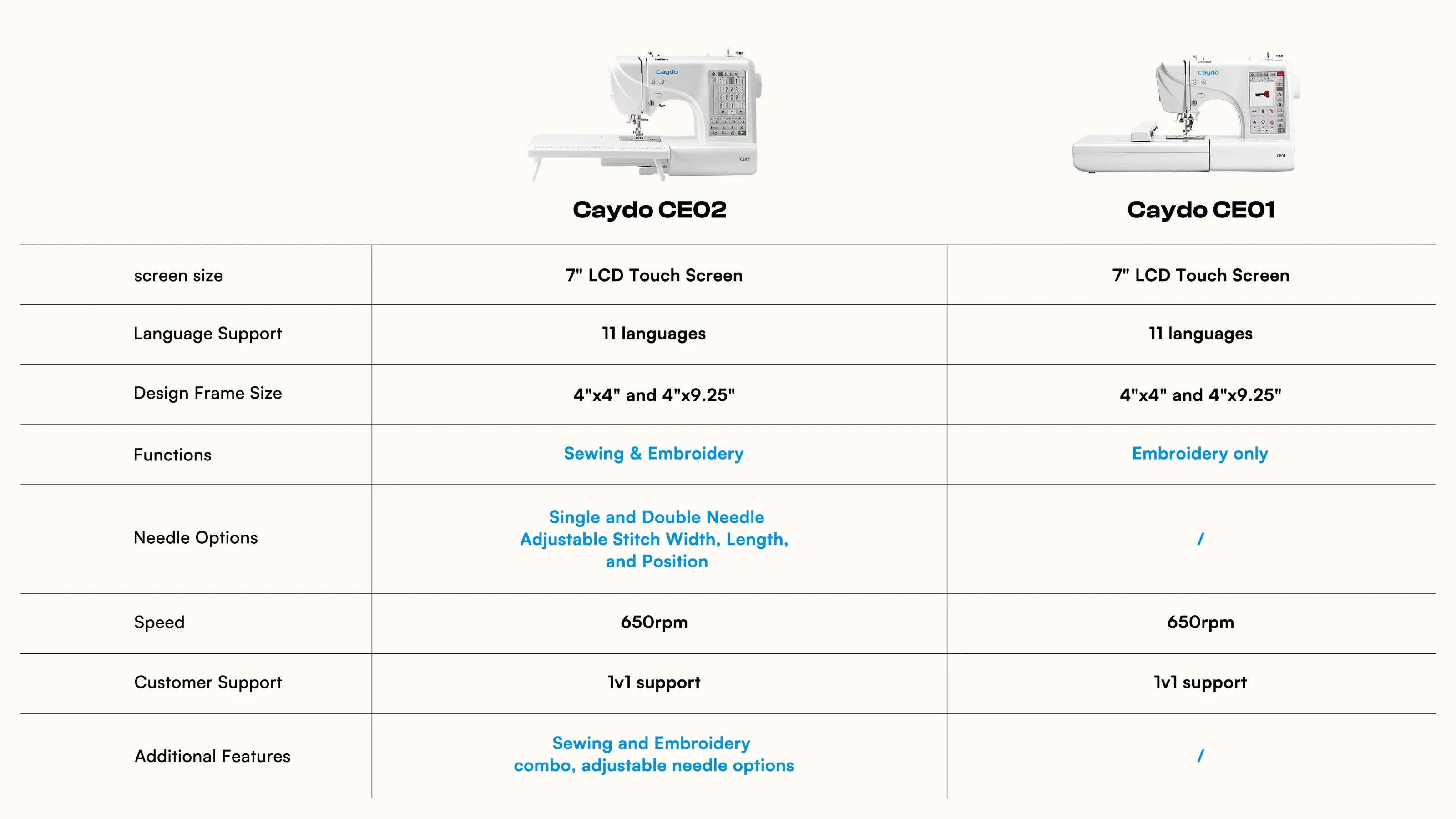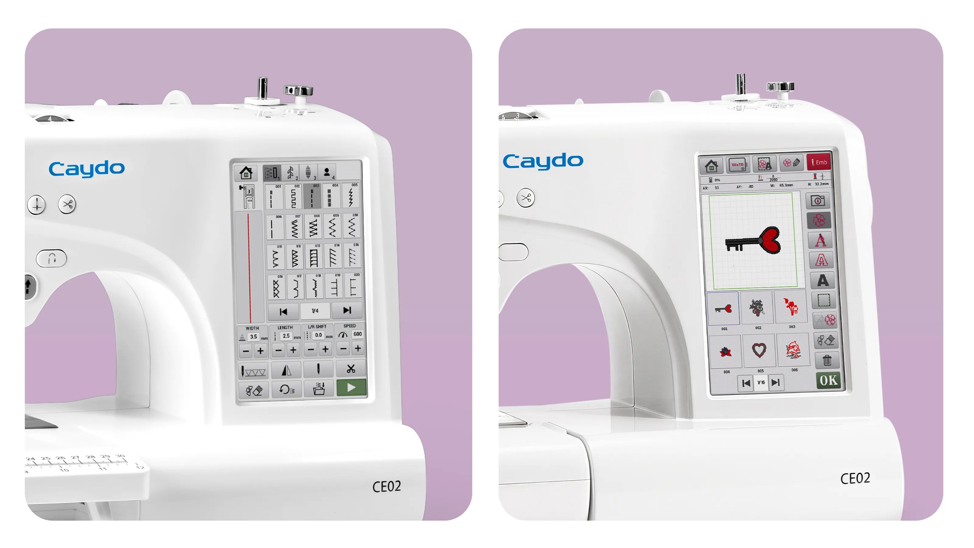 Includes both 4x4" and extra-large 4x9.25" embroidery hoops—perfect for everything from small designs to larger fabric projects. While most machines only support a 4x4" area, Caydo gives your creativity more space to grow.