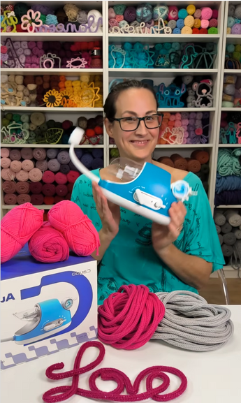 No crochet skills are required. You simply feed the yarn, press start, and the machine forms i-cords automatically.