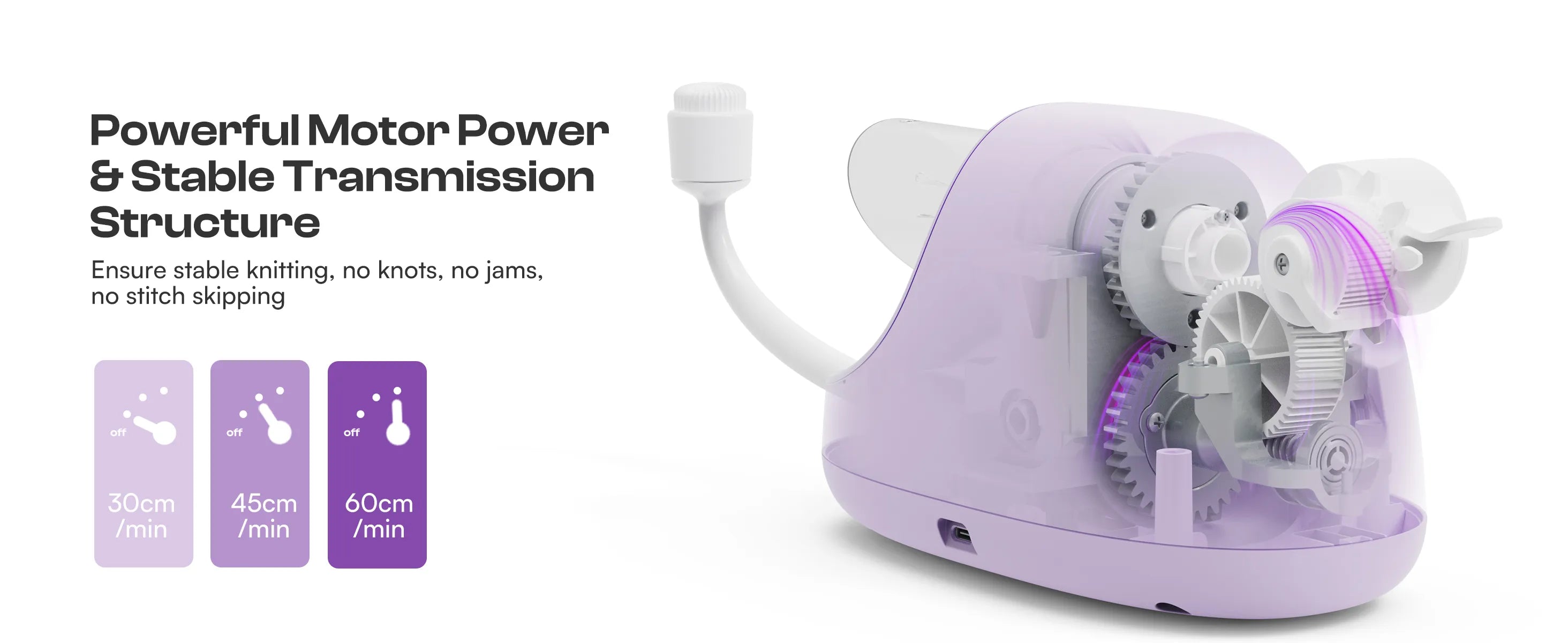 Fully automatic knitting. You can choose the preferred speed according to your needs.