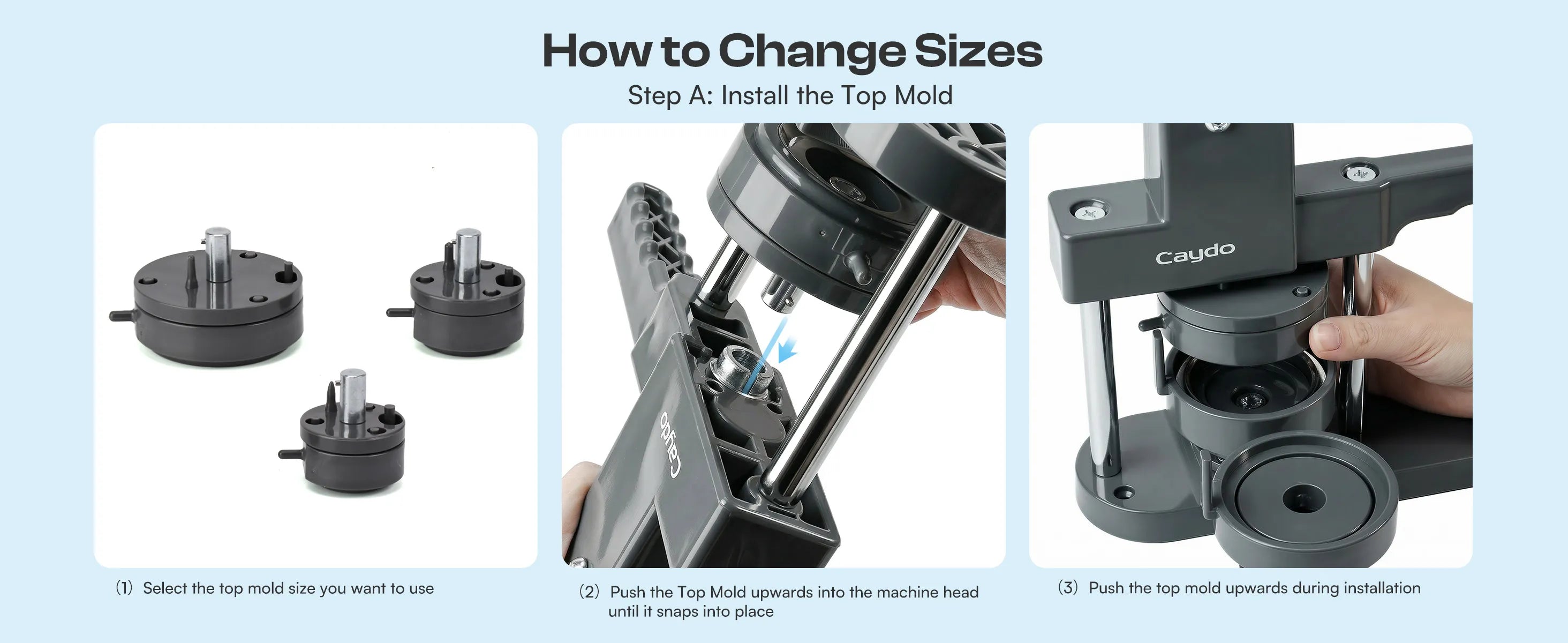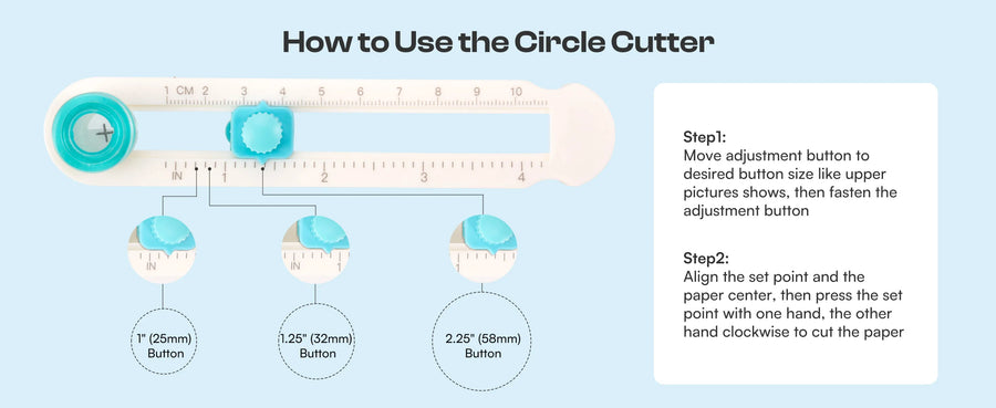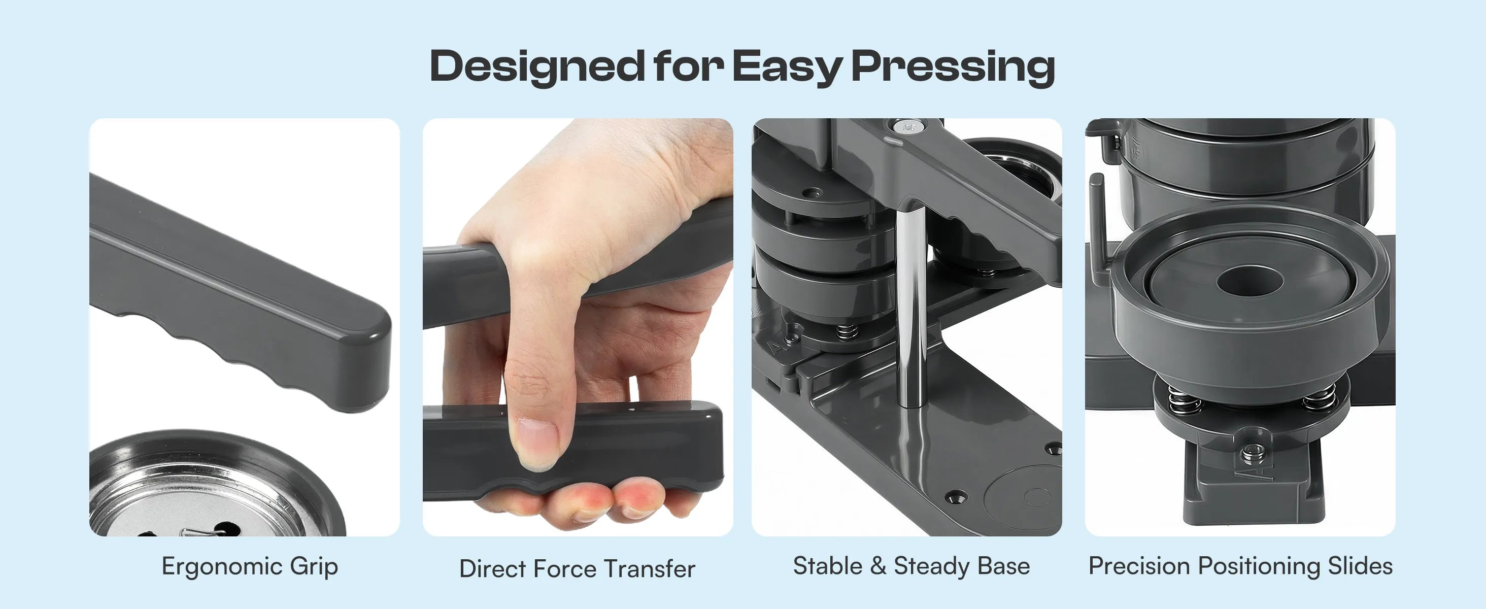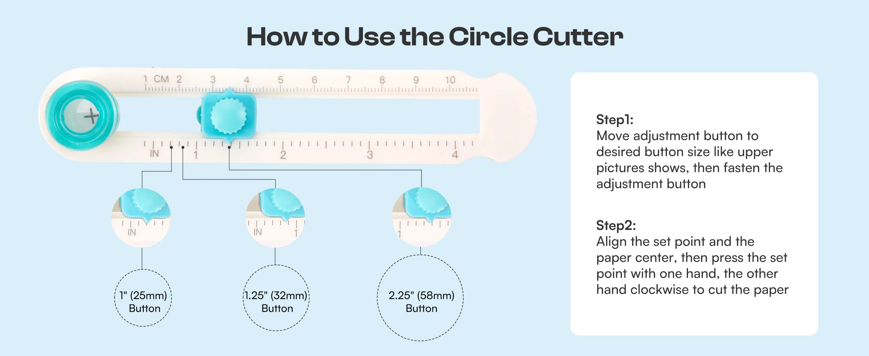 This 3-in-1 button maker includes interchangeable 1" (25mm), 1.25" (32mm), and 2.25" (58mm) molds, so one machine can handle small giveaways, everyday badges, and larger statement pieces.