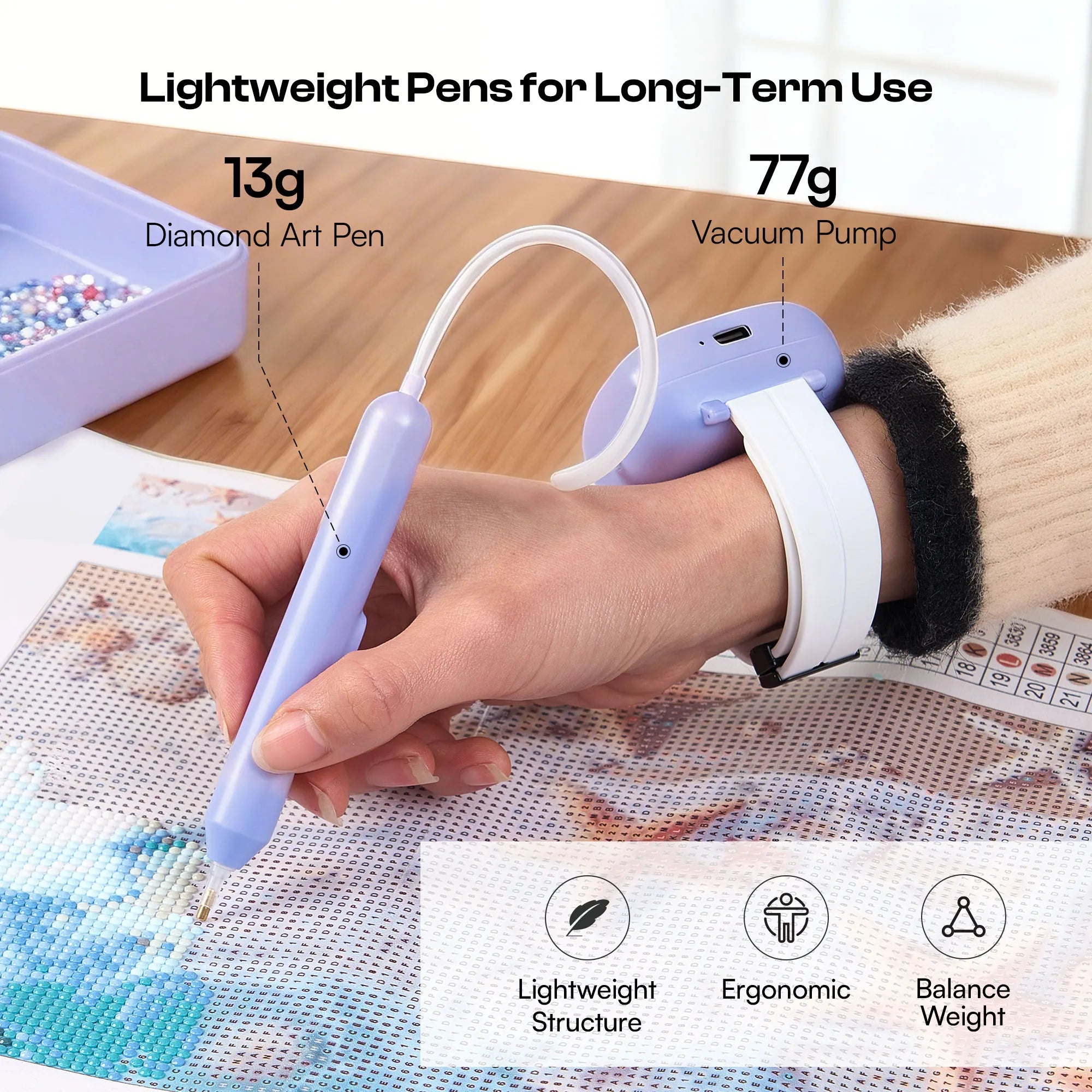But a traditional diamond painting pen can turn that into constant gripping, wax residue, cord clutter, and hand strain—especially when you want to keep going longer.