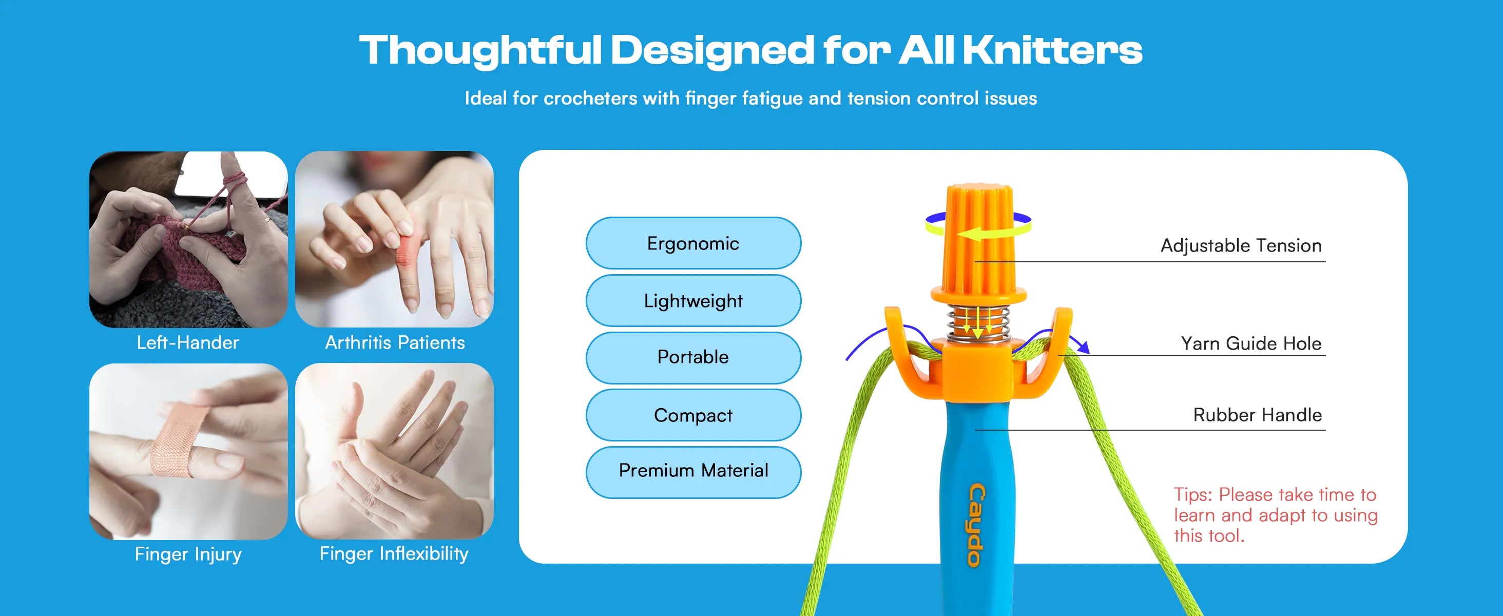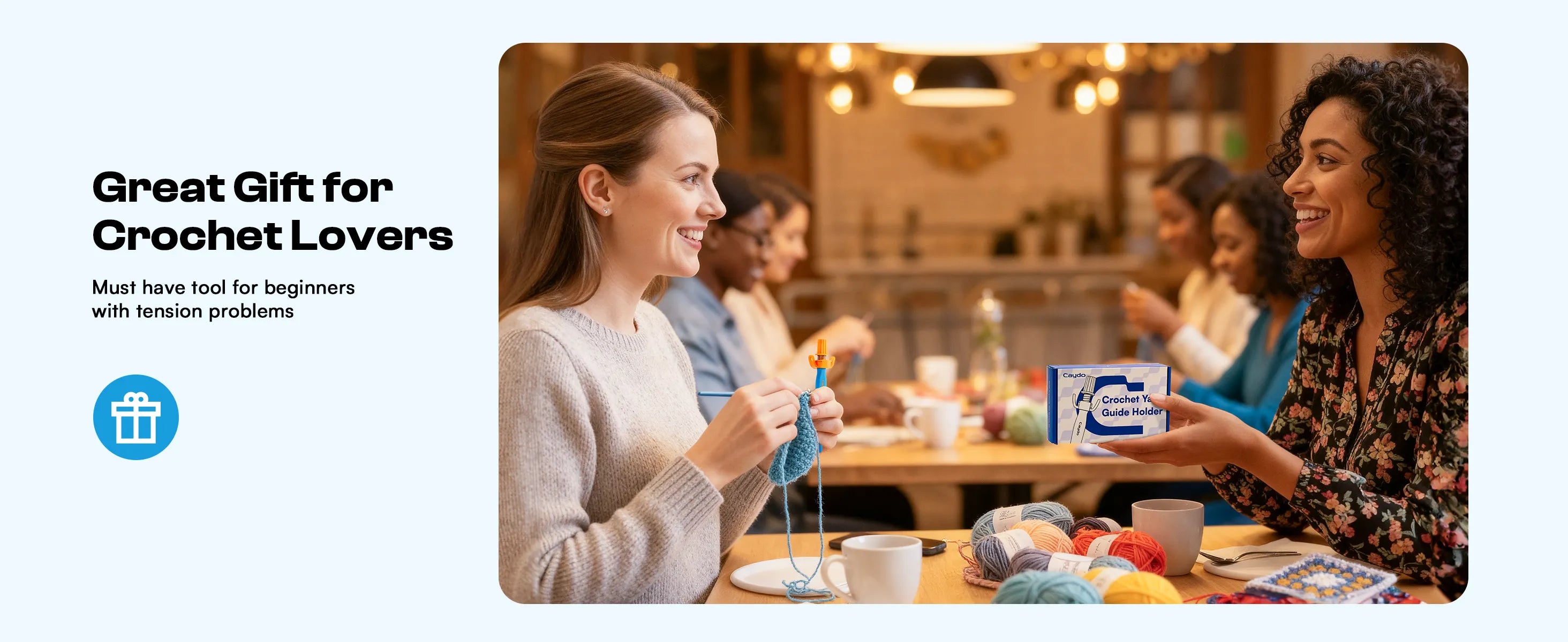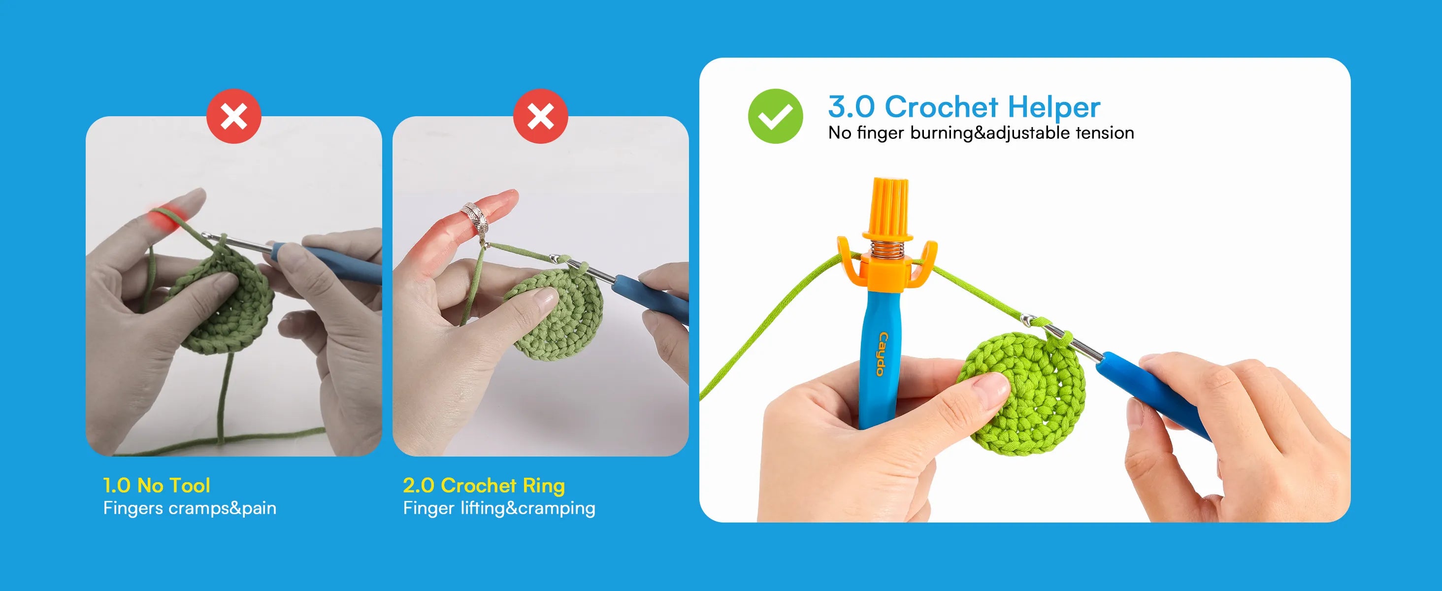 Crochet Helper guides yarn smoothly and protects your hands — every stitch, every session. 🧶💛