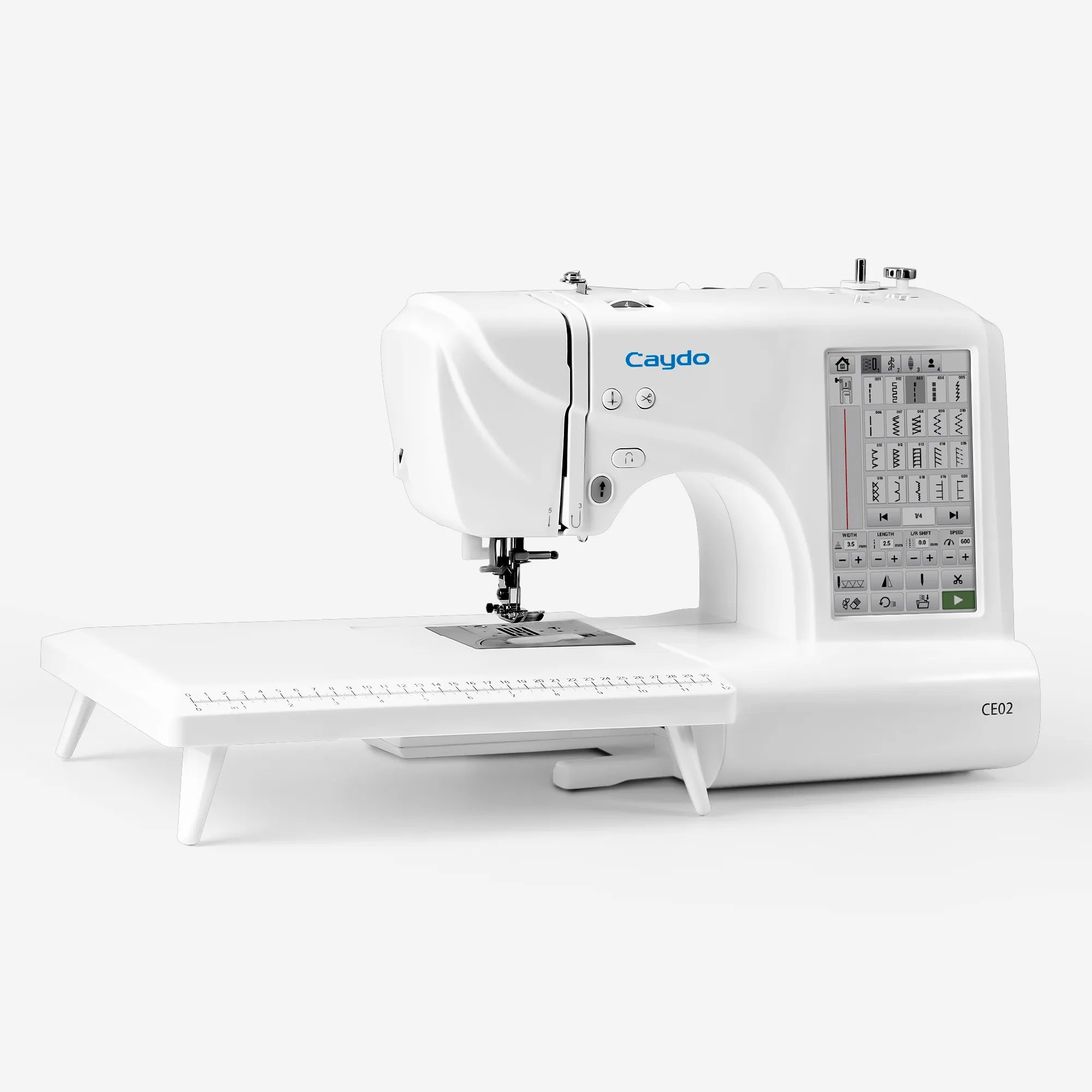 The Caydo embroidery machine features a 7-inch full-color touchscreen—much larger than the standard 4-inch screen in similar models. Easily preview designs, adjust settings, and select fonts with intuitive controls that make it beginner-friendly.