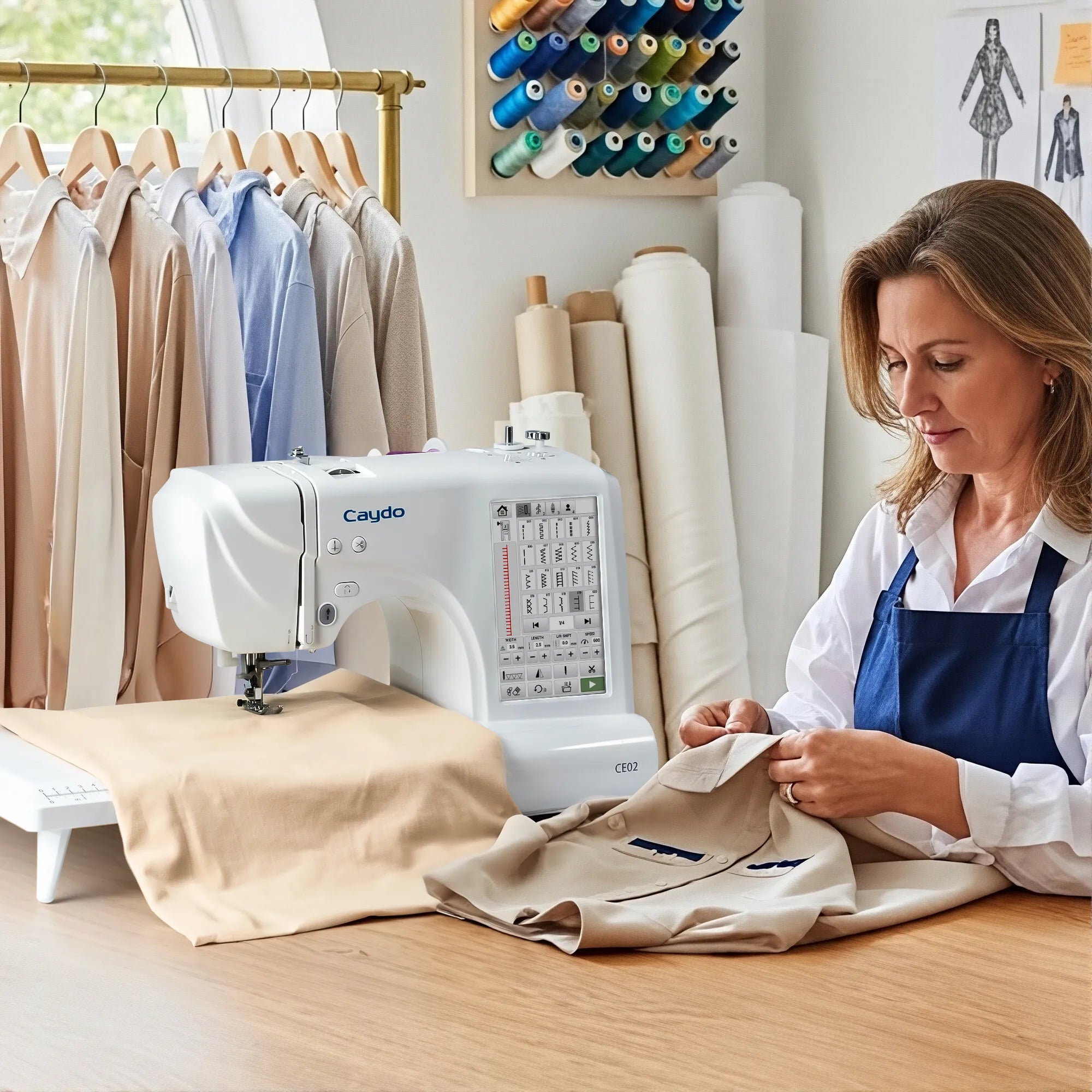 The upgraded CE01 combines advanced embroidery features with full sewing functions, offering more built-in designs, stitches, and a smoother touchscreen experience.