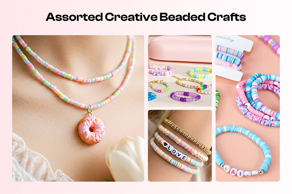 - Everything you need in the Box: Coming with 1 Pink Electric Bead Spinner, 1 Bag of colorful clay beads, 1 Bag of Letter Beads, 2 Beading Needles, 1 USB-C Cable, 1 roll of White Cotton Thread, 1 roll of Elastic String and 1 detail user manual to guide you how to use it