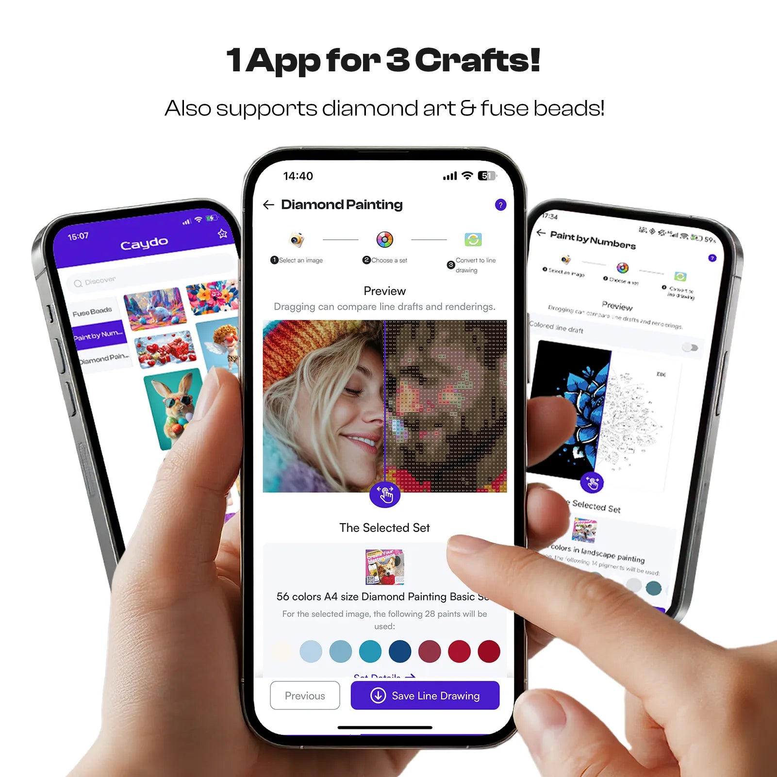 Caydo 3-Pack Quick Custom Diamond Painting Kit with Design App